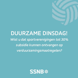 DUURZAME DINSDAG bij SSNB! Wist u dat sportverenigingen tot 30% subsidie kunnen ontvangen op verduurzamingsmaatregelen?